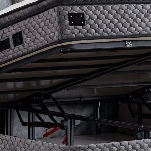 Gulta ar pacelšanas mehanismu,veļas kasti. Grezns mīksts galvgalis un mīkstas malas.Gultas pamats uz koka kājam.Daudzslāņu matracis vidēji mīksts. Neatkarīgas atsperes Pocket, puta ar atmiņu Memory,ortopēdiskais efekts,perimetra pastiprinājums. Liela audumu krāsu izvēle. Papildus var pasūtīt-nakts tumbiņas,pufs,soliņš,matracis. Cena bez matrača.