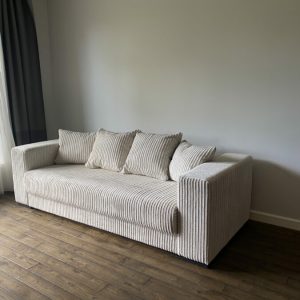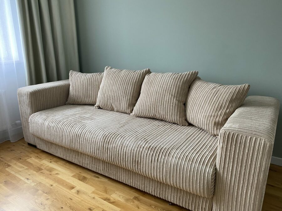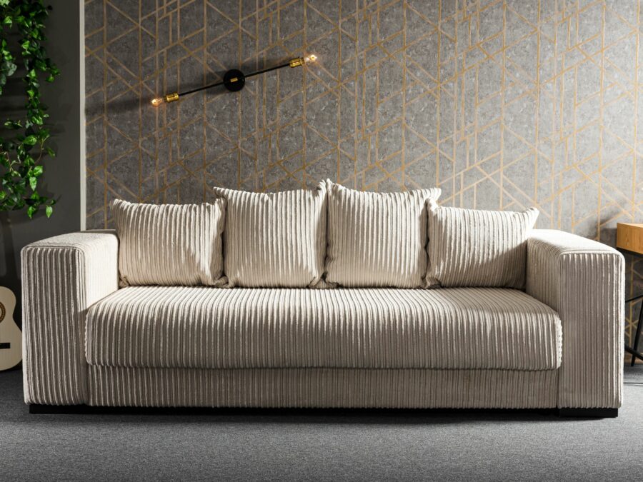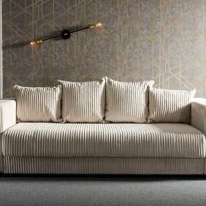 Modelim ir plaši masīvi roku balsti, kas var tikt izmantoti kā papildu sēdvietas. Apakšā atrodas ietilpīga veļas kaste ar vieglu piekļuvi, nodrošinot praktisku uzglabāšanas risinājumu.