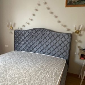 Dekoratīvs stiepjums: Galvgaļa dekoratīvais stiepjums piešķir gultai izsmalcinātu un modernu izskatu, padarot to par jebkura interjera centrālo elementu.