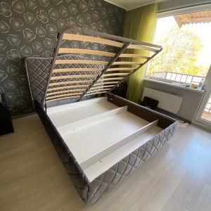 Paceļamais mehānisms ar gāzes liftu: Ērts un uzticams paceļamais mehānisms nodrošina vieglu piekļuvi zem gultas izvietotajiem uzglabāšanas atvilktnēm. Gāzes lifts ļauj viegli pacelt pamatni, nepieprasot ievērojamas pūles.