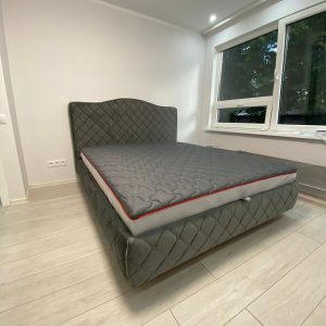Uzglabāšanas atvilktnes: Plašas uzglabāšanas atvilktnes zem gultas nodrošina papildu vietu gultas veļas, spilvenu un citu piederumu glabāšanai, palīdzot uzturēt kārtību guļamistabā.