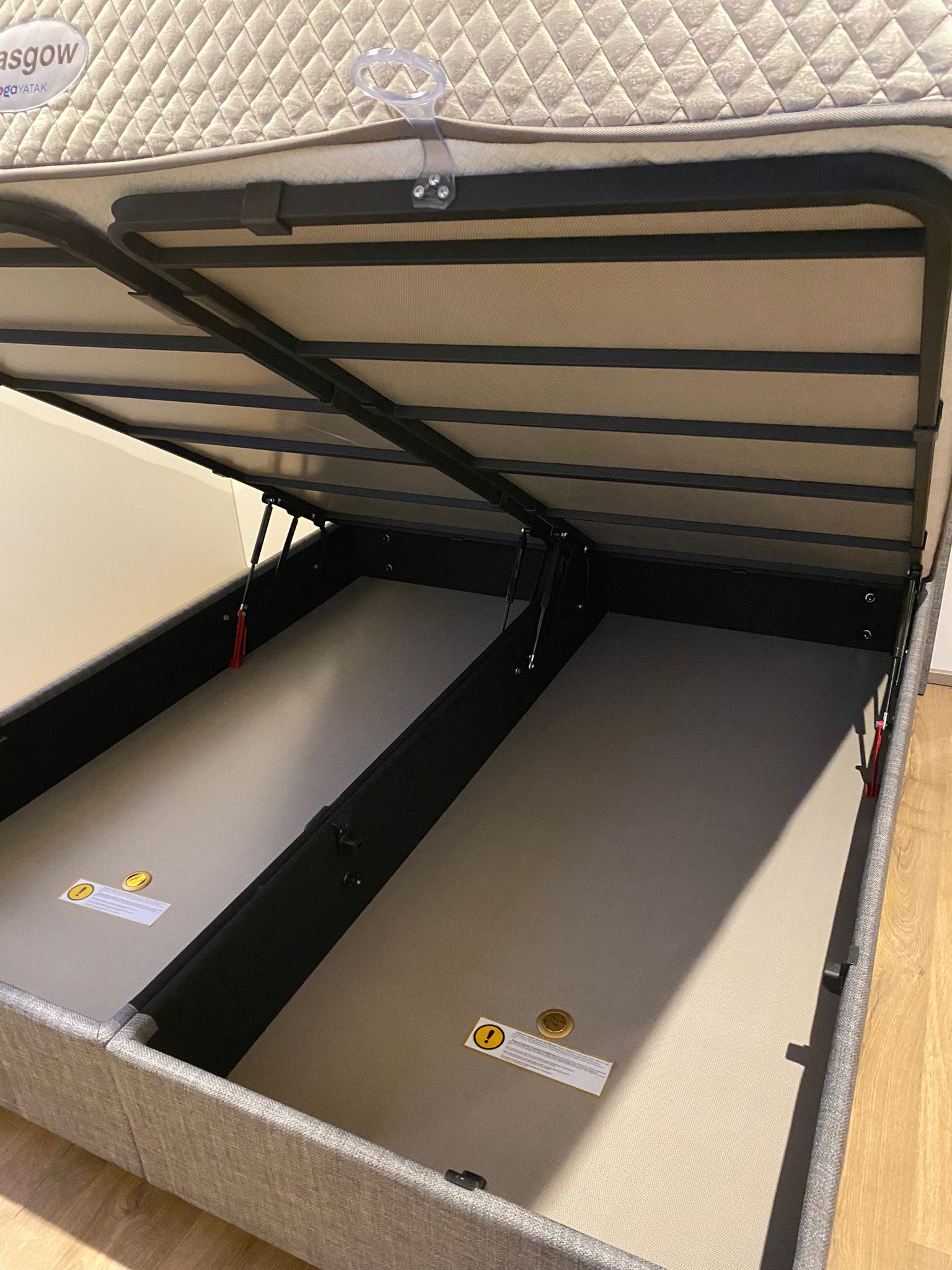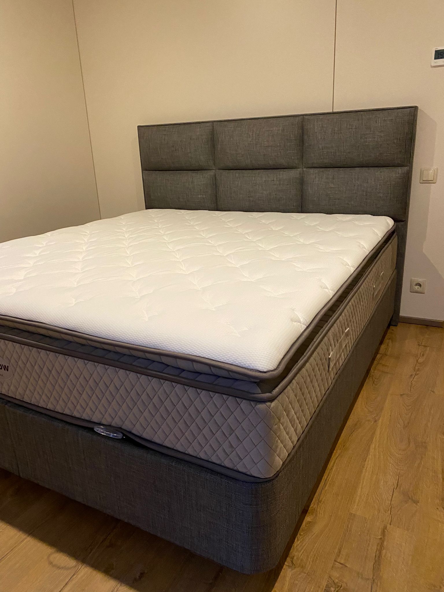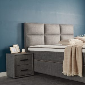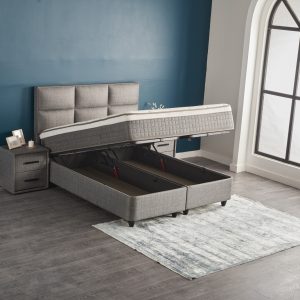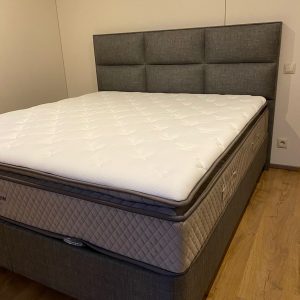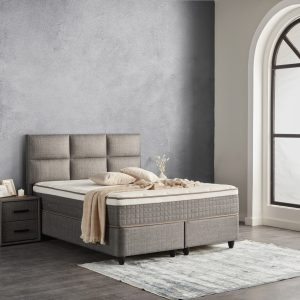 Šī kontinentālā gulta piedāvā izsmalcinātu dizainu un augstu komfortu. Pārklāta ar pelēku audumu, tā harmoniski iederas jebkurā interjerā. Gultai ir integrēta plaša veļas kaste ar jaudīgiem mehānismiem, nodrošinot ērtu un efektīvu uzglabāšanu.