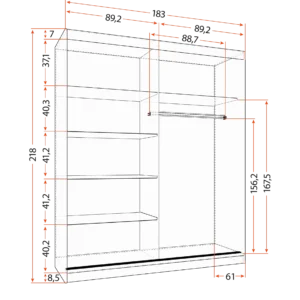 ✔ Plaša iekšējā telpa – dziļi plaukti un drēbju stienis ērtai organizācijai