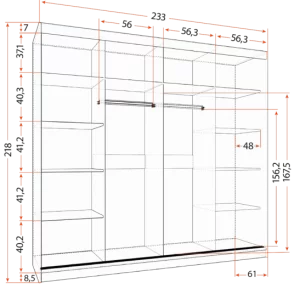 ✔ Divas plašas nodalījumu zonas – ar plauktiem un drēbju stieni optimālai organizācijai