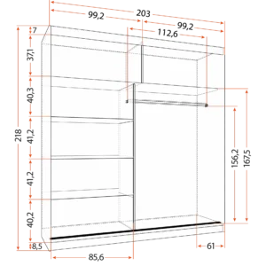 ✔ Plaša uzglabāšanas vieta – plaukti un drēbju stienis ērtai organizācijai