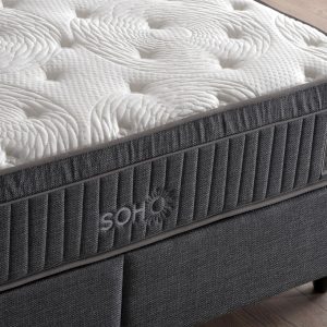 Matracis Soho. Daudzslāņu vidēji mīksts vienpusējs matracis. Tas pielāgojas jūsu ķermeņa formai un piedāvā perfektu miega risinājumu un papildu komfortu .Jaunas paaudzes matracis ar audumu ar pretnovecošanās funkciju. Pateicoties šai funkcijai, tas gandrīz nodrošina ādas kopšanu nakti un samazina novecošanās ietekmi. Tas arī nodrošina vislielāko atbalstu ķermeņa pozai ar savu moderno Pocket atsperu sistēma, hiperputas un pretslīdes (matrača imobilizējošs audums), kam jābūt hibrīdmatracī. Matracis rada dabisku barjeru pret svīšanu un mitruma veidošanos ,pateicoties gaisa cirkulācijai.