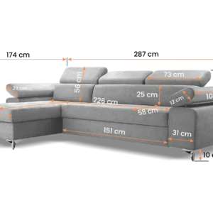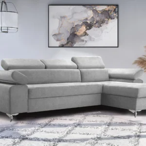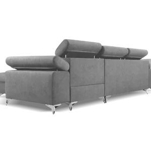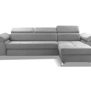 Mūsdienīgais stūra dīvāns BARDI apvieno elegantu dizainu un funkcionalitāti. Izgatavots no augstas kvalitātes materiāliem, aprīkots ar ērtu izvelkamo mehānismu DELFIN, regulējamiem galvas balstiem un roku balstu, kā arī ietilpīgu veļas kasti.