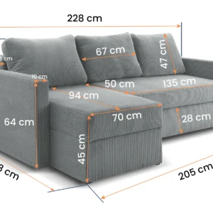 ✔ Pielāgojams dizains – iespēja mainīt dīvāna stūra pusi pēc vajadzības