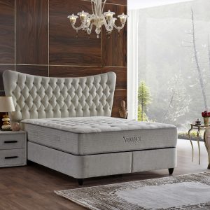 Gulta Vertice ar pacelšanas mehanismu,veļas kasti . Grezns mīksts galvgalis un mīkstas malas.Gultas pamats uz koka kājam.Daudzslāņu vidēji-mīksts matracis . Neatkarīgas atsperes Pocket ,ortopēdiskais efekts,perimetra pastiprinājums. Liela audumu un eko ādas krāsu izvēle. Papildus var pasūtīt-nakts tumbiņas,pufs,matracis.